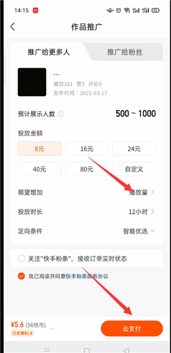 6、没有渠道快手播放量只能通过快手对你视频的推荐进行获取,并没有免费领取的渠道。